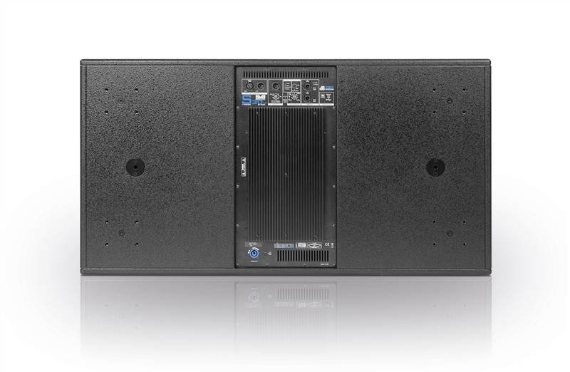 DVA S30N subwoofer features a sophisticated hybrid design able to bring together the benefits of bass reflex and horn systems in a compact housing, engineered to render low frequencies with high sound pressure levels. The two baffle boards are arrayed in the form of a V and guide the central bass reflex channel‘s sound energy into the horn's port. This funneling action is smooth and uniform, greatly increasing its range. The high-quality multiplex housing is covered in robust black textured lacquer and equipped with eight grips.