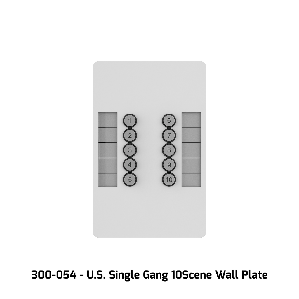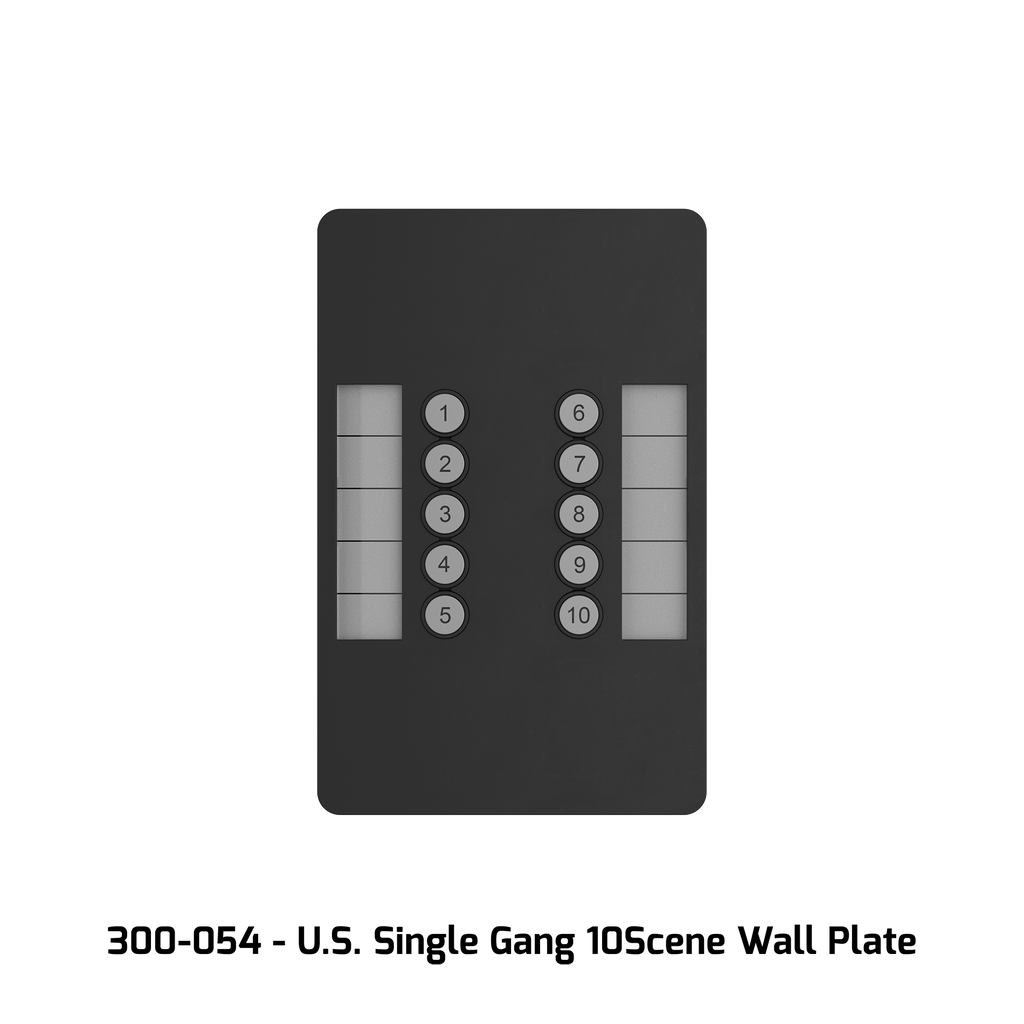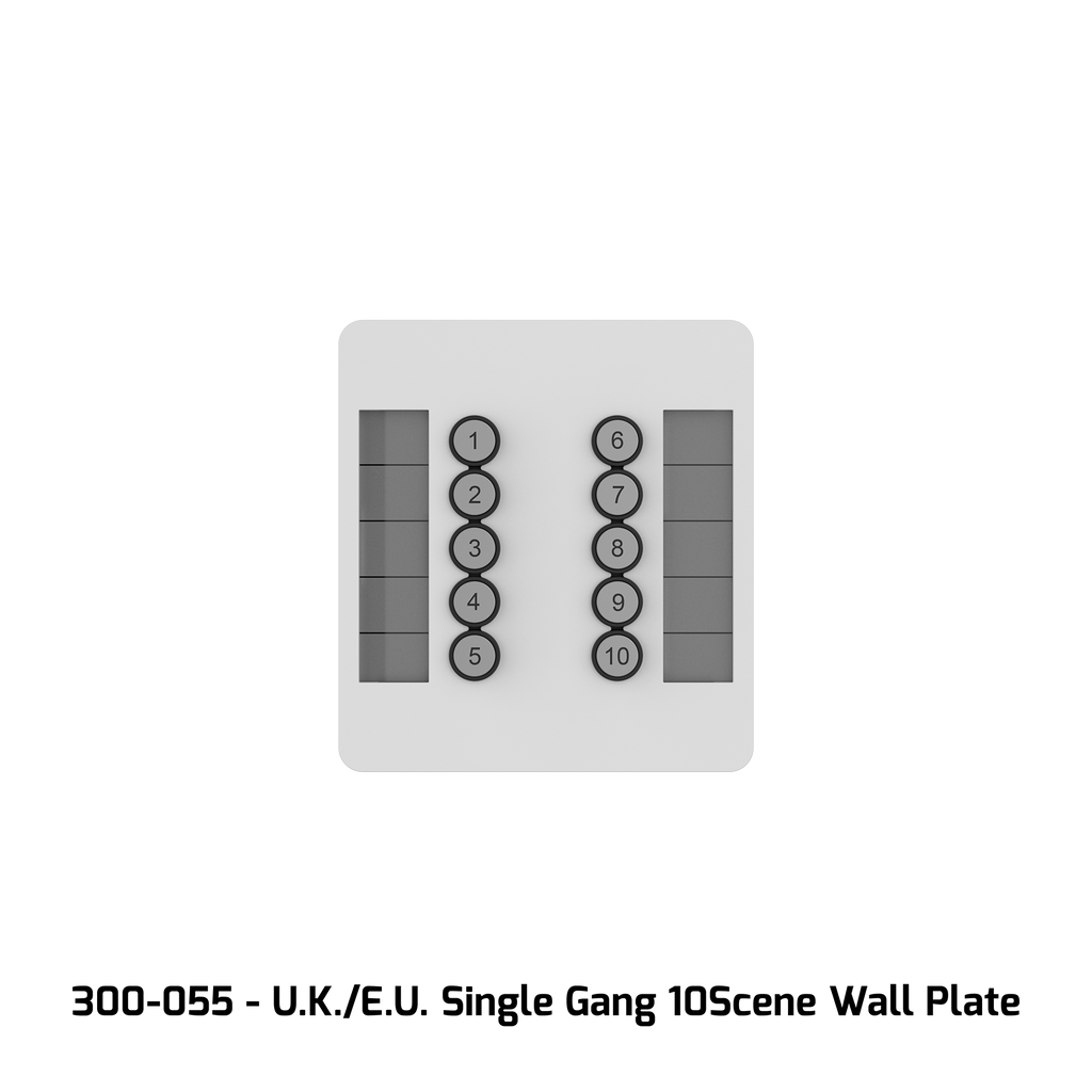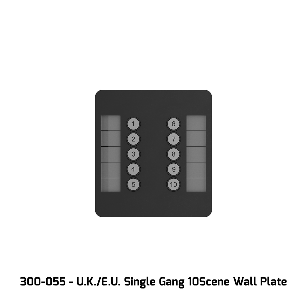 The 10Scene Wall Plate features ten 10Scene trigger buttons, with dual colour LED status indication.