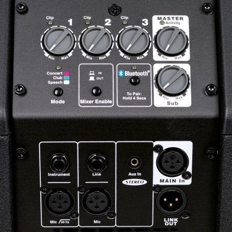 Ch. 1 Clip, Ch 2. Clip, Ch. 3 Clip, Master Activity, Mode (Concert, Club, Speech), Bluetooth Status